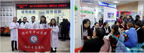 2019年10月29日是第十四個“世界卒中日”,錦州市中心醫(yī)院神經(jīng)內(nèi)科積極響應國家衛(wèi)健委腦卒中防治委員會和中國卒中學會號召,同時結(jié)合第二批“不忘初心、牢記使命”主題教育,學做結(jié)合,積極行動,開展了以“預防為主,遠離卒中”為主題的一系列宣傳活動,醫(yī)務人員們通過義診、講座、健康教育等多種形式,提高人民群眾對腦卒中的防控意識,受到百姓的熱烈歡迎。