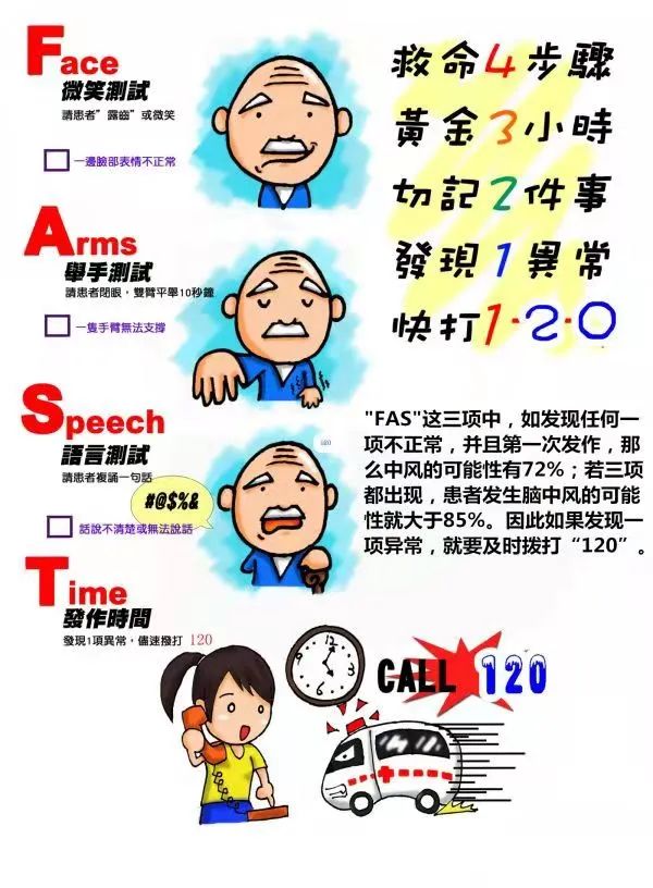 2.警惕先兆表現(xiàn)。如果老年人出現(xiàn)言語不清、口角歪斜、手腳無力或麻木、視物雙影、頭暈頭疼、睡眠增加等癥狀,無論是陣發(fā)性還是持續(xù)性立即撥打120或根據(jù)中國卒中地圖前往附近的具有卒中救治能力的醫(yī)院。