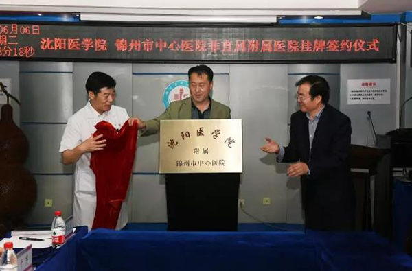 在熱烈的氣氛中,錦州市衛(wèi)計(jì)委副主任潘文德、沈陽(yáng)醫(yī)學(xué)院副院長(zhǎng)韓松、錦州市中心醫(yī)院院長(zhǎng)張一兵為“沈陽(yáng)醫(yī)學(xué)院附屬錦州市中心醫(yī)院”揭牌。