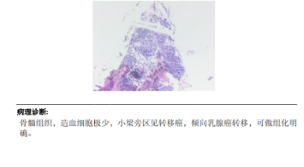 想要真正控制病情改善預(yù)后必須從病因入手,劉丹主任醫(yī)師與患者及家屬反復(fù)溝通,鼓勵(lì)患者增強(qiáng)信心,配合診療。通過(guò)嚴(yán)密監(jiān)測(cè)腎功能情況下積極處理高鈣危象、輸血糾正貧血、改善心功能,對(duì)癥治療,患者生化指標(biāo)及一般狀態(tài)稍有改善,完善超聲引導(dǎo)下乳腺腫物穿刺活檢組織病理,患者診斷左乳腺浸潤(rùn)性導(dǎo)管癌HR陰性;HER2陽(yáng)性明確免疫分型,為進(jìn)一步抗腫瘤治療指引了方向。