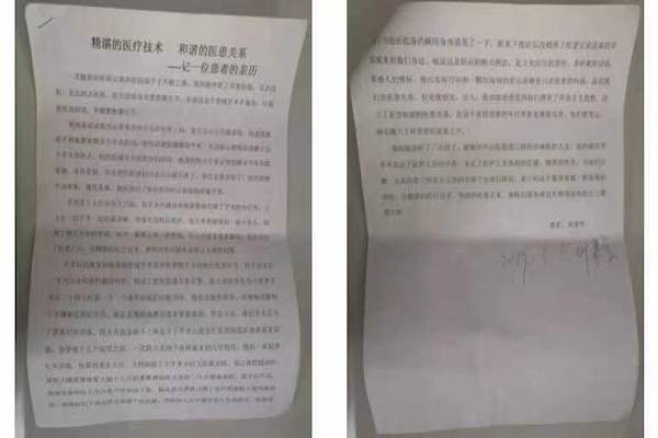 小編按:這是一位患者寫給醫(yī)務(wù)人員的感謝信,記錄了這位患者在我院的親身經(jīng)歷,信件送到醫(yī)院領(lǐng)導(dǎo)手中,當(dāng)編者到骨外三科詢問事情的前因后果時,骨外三科醫(yī)務(wù)人員竟不知道患者寫了這封感謝信。