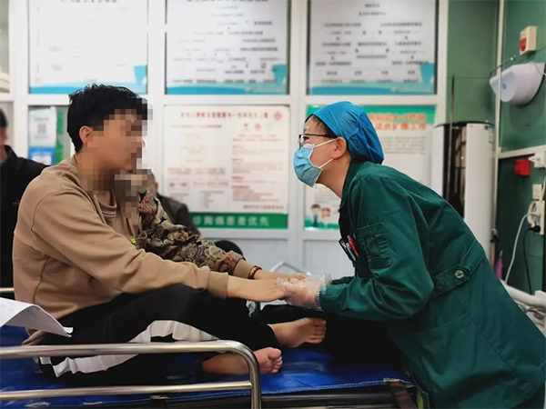 如果說醫(yī)院是戰(zhàn)場(chǎng),急診就是最前線。急診創(chuàng)傷救治通道、急診心腦血管救治通道、急診危重癥搶救通道等三條救命線的暢通無(wú)阻,是用護(hù)士們的汗水和辛勞鋪就。急救車呼嘯而至,護(hù)士們已經(jīng)推著平車火速趕到門口迎接,然后根據(jù)患者病情,按照“三區(qū)四級(jí)”準(zhǔn)確安排就診次序,靜脈輸液、動(dòng)脈采血、吸痰吸氧、骨髓腔穿刺、心肺復(fù)蘇……所有的護(hù)理技能操作快速準(zhǔn)確,往往醫(yī)囑下達(dá)的同時(shí),護(hù)士們已經(jīng)開始行動(dòng)!血液、痰液噴濺到衣服上,絲毫不會(huì)影響姑娘們的操作速度,跪地、跪床心肺復(fù)蘇也早已經(jīng)是家常便飯,談?wù)撈饋?lái),人們只看到她們臉上的云淡風(fēng)輕。